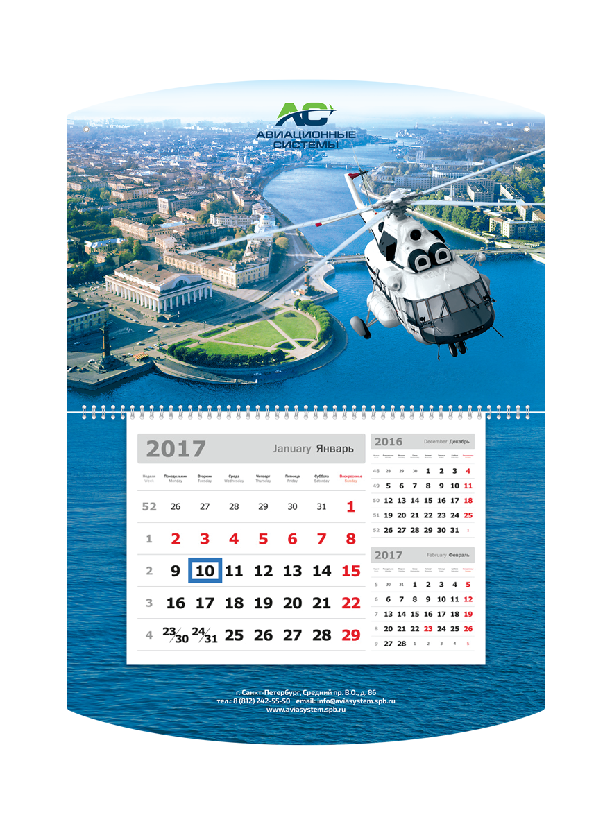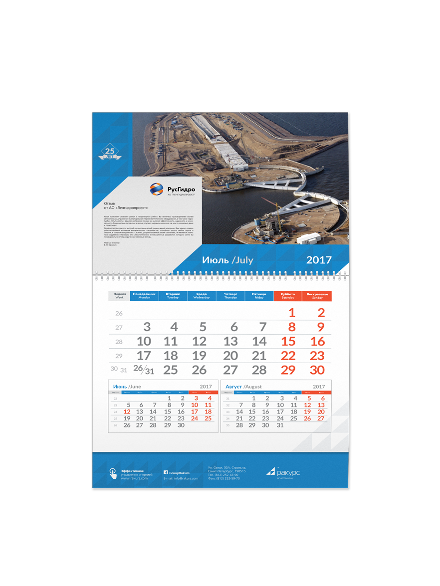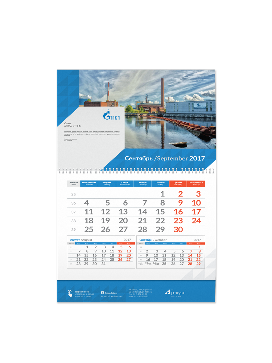 В среднем разработка календаря и его печать занимает от 10 до 20 рабочих дней.
